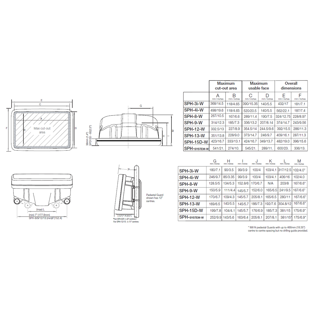 Fits pedestal rails from 25mm to 33.7mm (0.98" -1.33"). Using a unique clamping system, the Pod can fit rail widths from 178mm (7") upwards. - Secure & Watertight Install