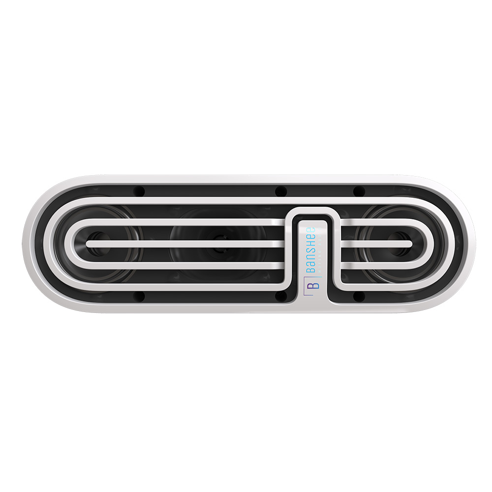 Banshee Marine Audio’s unique Under Gunwale Speaker system includes two under Gunwale speaker arrays in perfectly tuned enclosures. Housing two 4” drivers and a horn-loaded tweeter in each enclosure, the system is tuned to elevate higher frequencies to enhance the listening experience when the speakers are mounted under the gunwales facing downward. While the LSUG speakers are designed for under gunwale mounting to save owners from cutting holes in their vessels, the signature Banshee Marine Audio aesthetic can also look and sound amazing mounted on a wall or bulkhead.