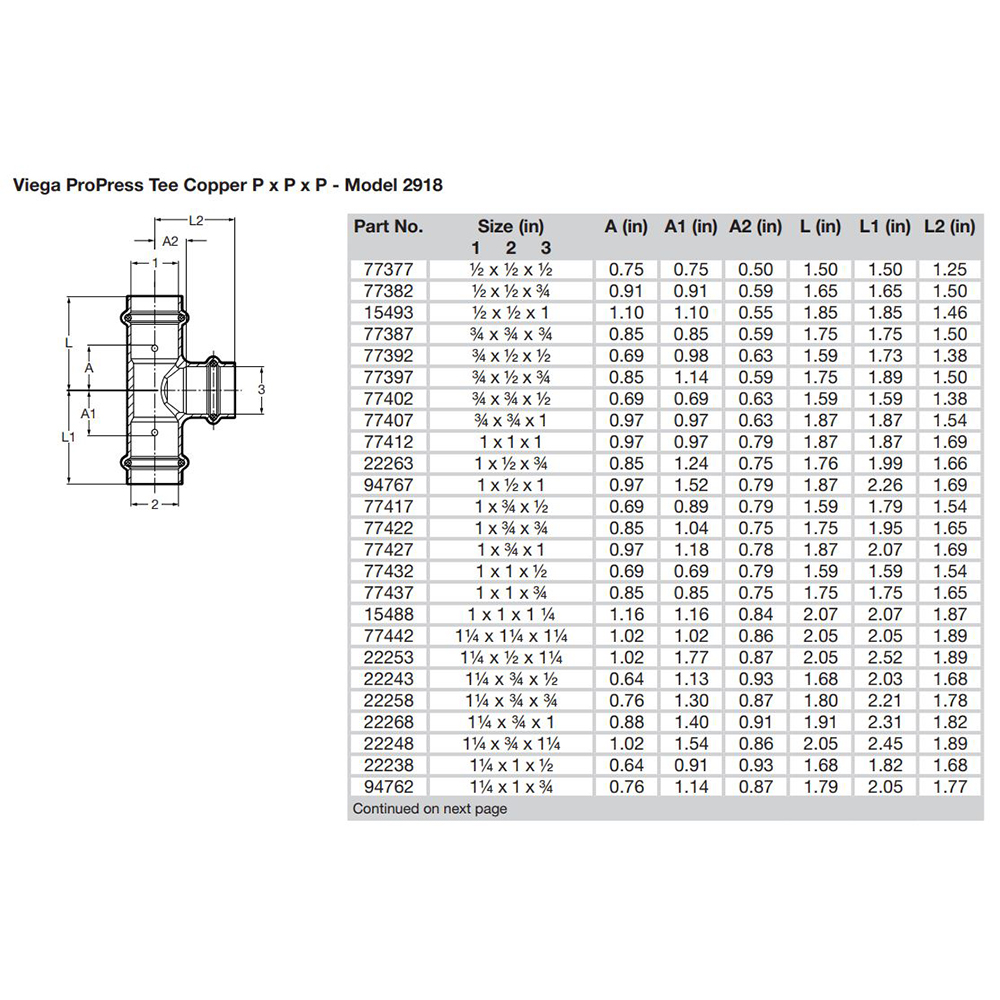 ProPress 1-1/4" Copper Tee - Triple Press Connection - Smart Connect Technology