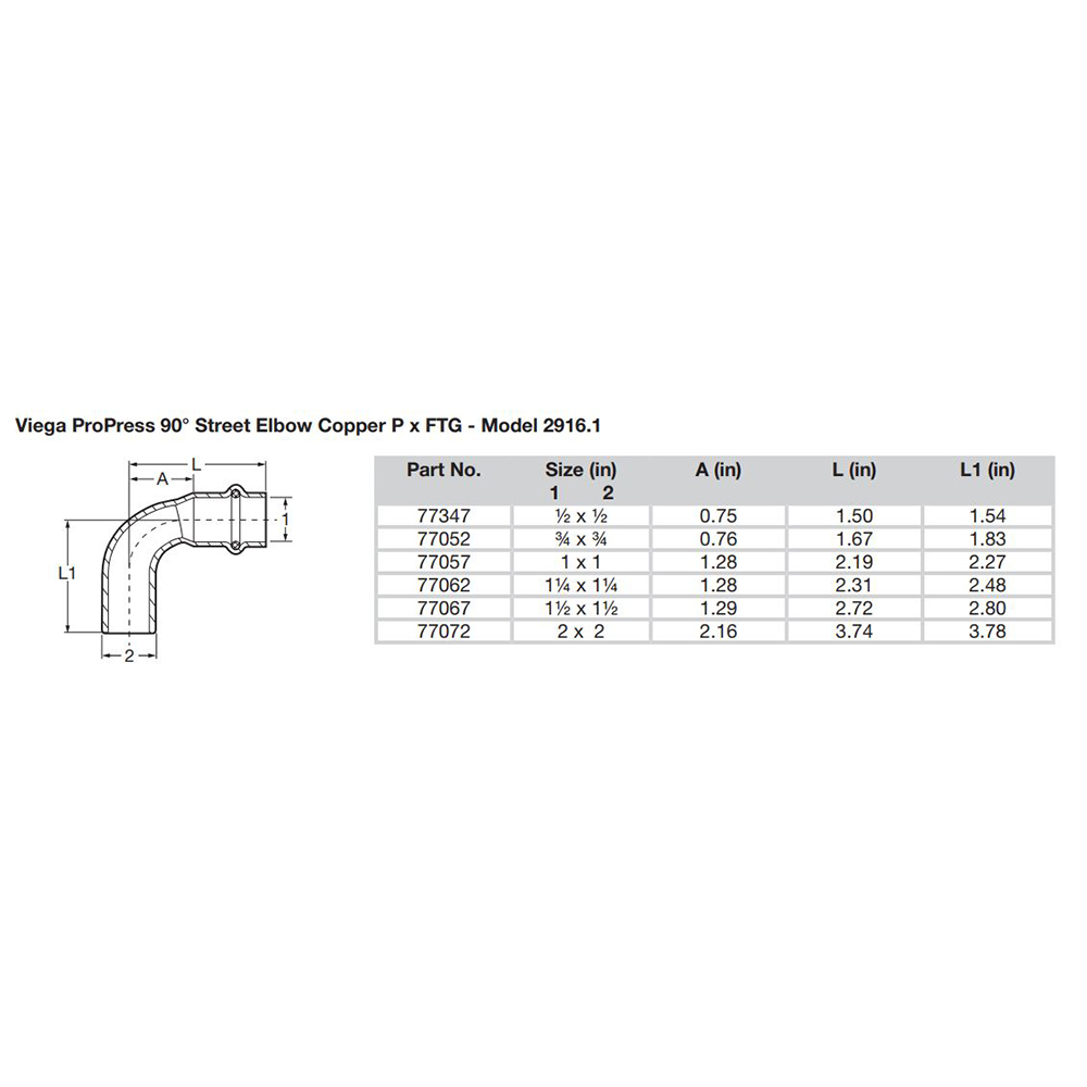 ProPress 3/4" - 90° Copper Elbow - Street/Press Connection - Smart Connect Technology