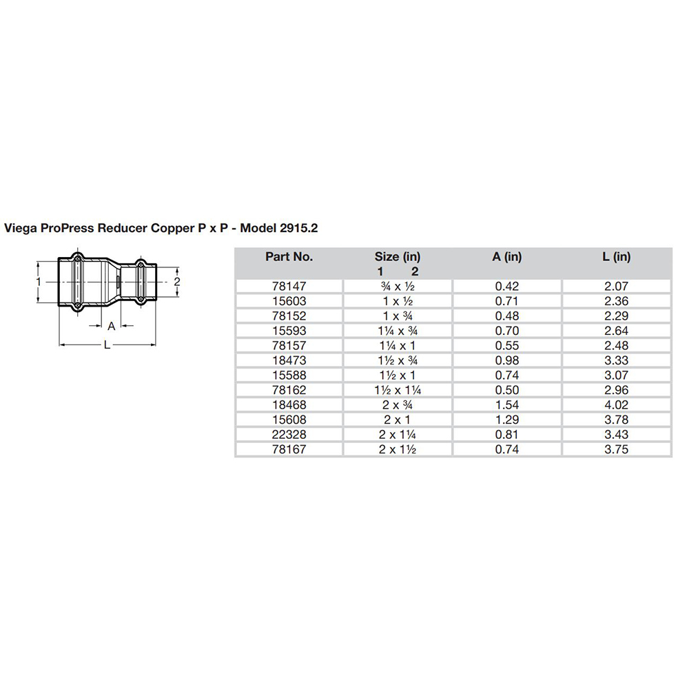 ProPress 3/4" x 1/2" Copper Reducer - Double Press Connection - Smart Connect Technology