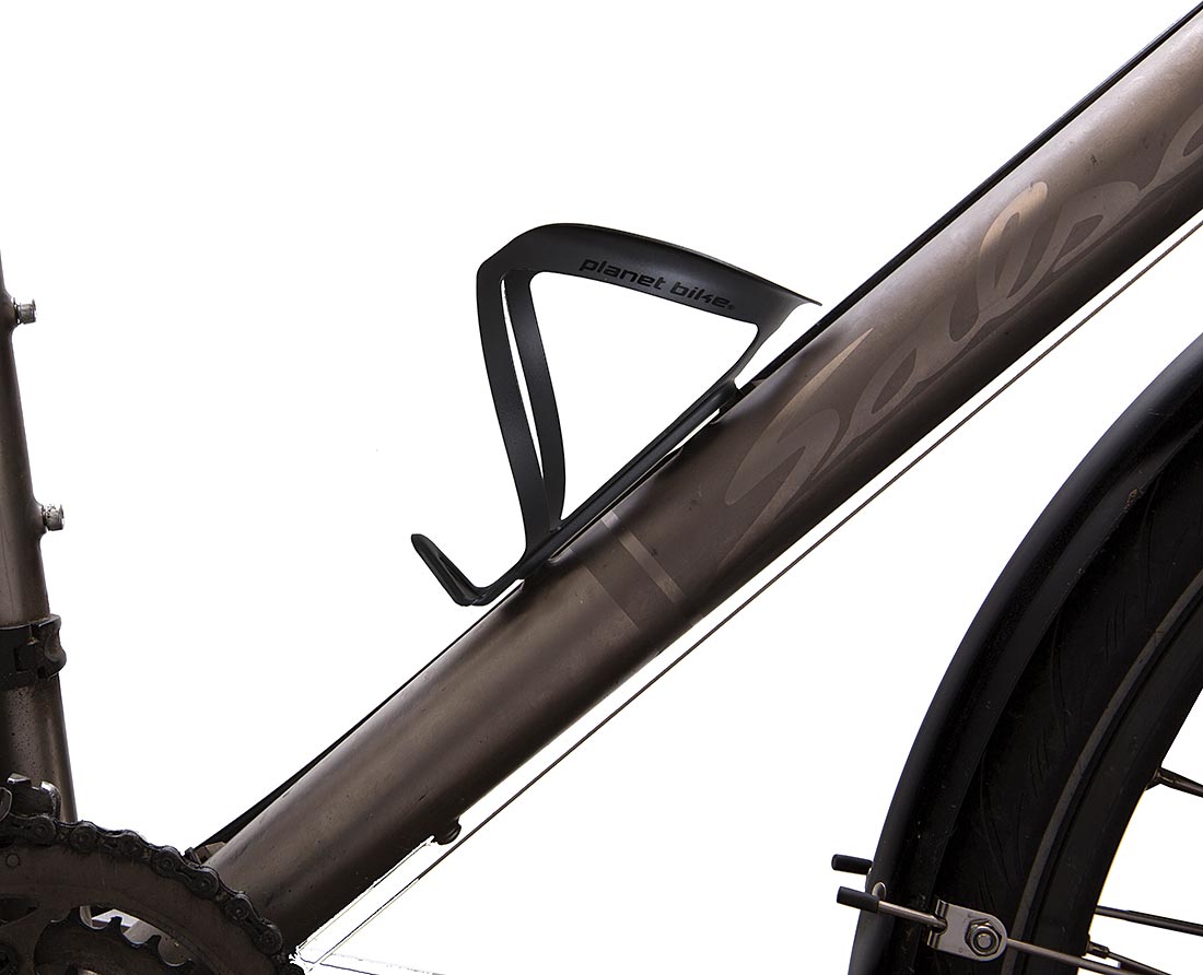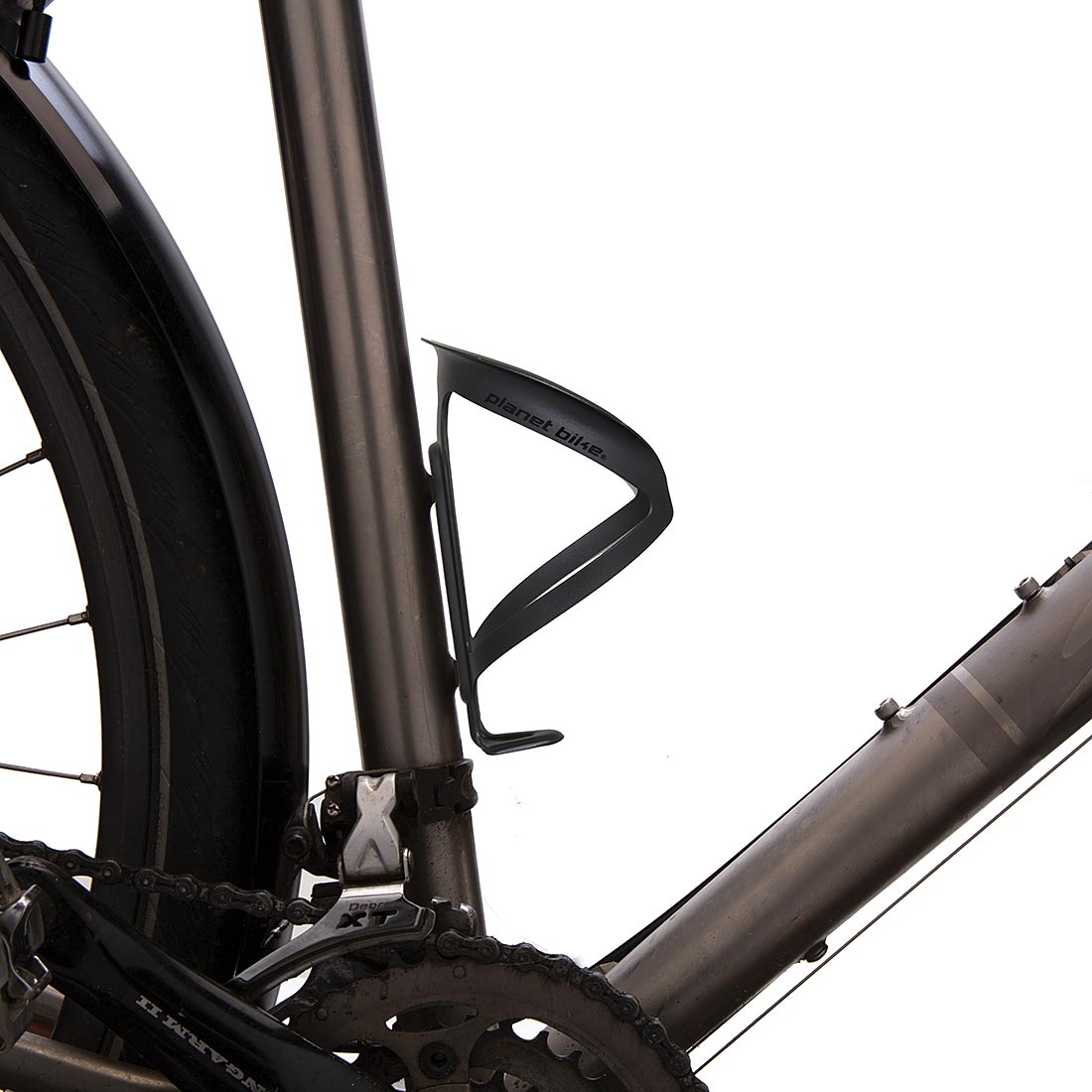 This 18 gram water bottle cage is nearly as light as air. The cold forged, single body aluminum construction grabs hold of your water bottle until you need to wet your whistle. Its handsome and streamlined design will compliment any bike.