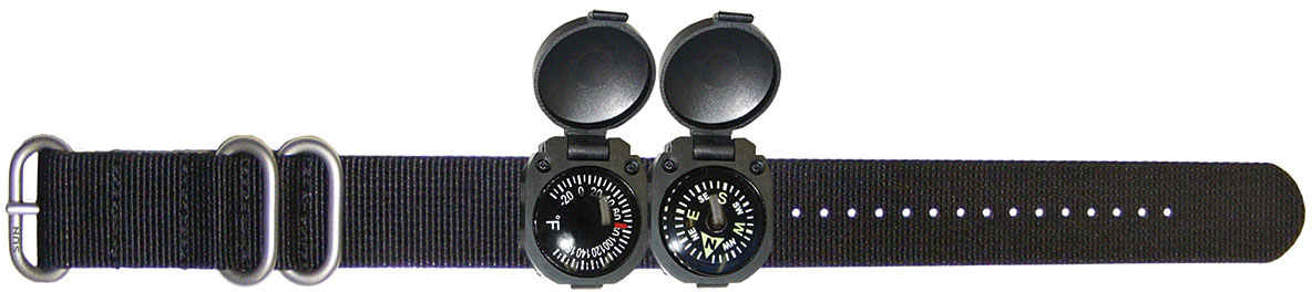 Product Description A cushion-mounted compass and thermometer with a protective hinged cover. A rugged tactical strap, 22mm, widely adjustable to fit most adults and children.