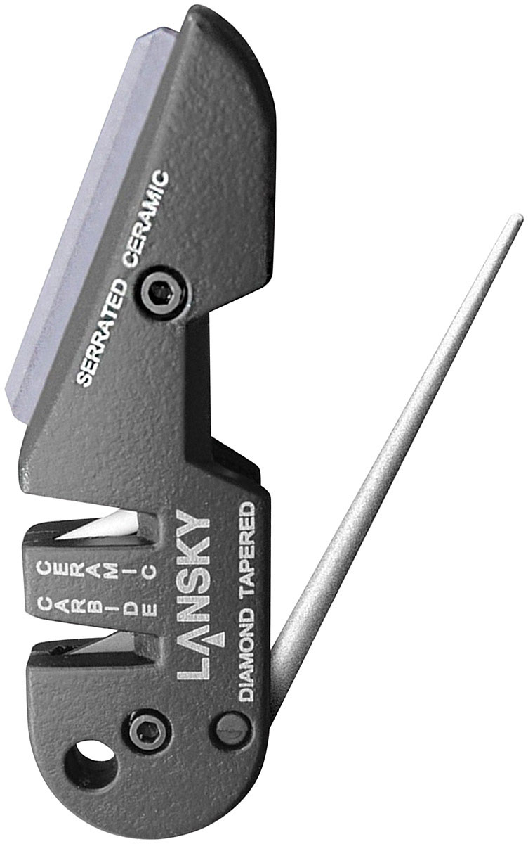 The Blademedic Knife Sharpener is the first responder for field repairs on all types of knife blades. It's like having an entire sharpening kit right in your pocket - able to tackle regular or serrated blades, gut hooks, hunting, fishing - just about any knife using one or all of the following elements: Tungsten carbide, ceramic sharpening rods, serrated knife sharpener and diamond tapered rod.