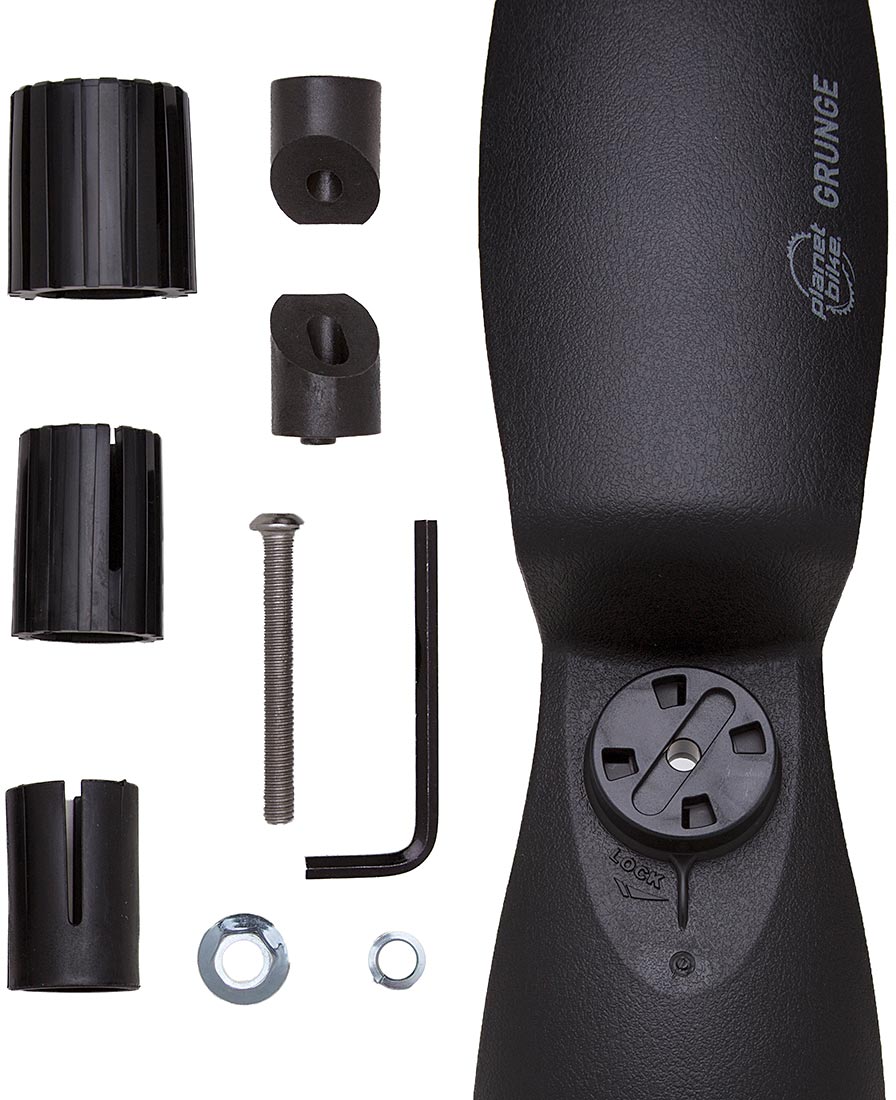 FRONT: The Grunge front fender was made for your messiest dirt adventures. It’s super durable and provides exceptional coverage from mud, crud and spray whether you’re riding 26” wheels or 700c. Its 3.4 inch wide profile and innovative steerer tube mounting system will work on most suspension and rigid forks. REAR: The Grunge Rear seatpost mounted fender is designed with an 85mm wide profile to shield your rear end from spray, mud and crud no matter what wheel size you ride. It’ll keep you clean on your commute or when ripping around on single track. DOWNTUBE: Say it, don’t spray it with our minimalist down tube mud guard. The Grunge Board is a great choice if you are looking for some extra protection from spray, mud and crud. The downtube-mounted fender has a 3 inch profile and quickly secures to your bike with the two-point rubber strapping system.