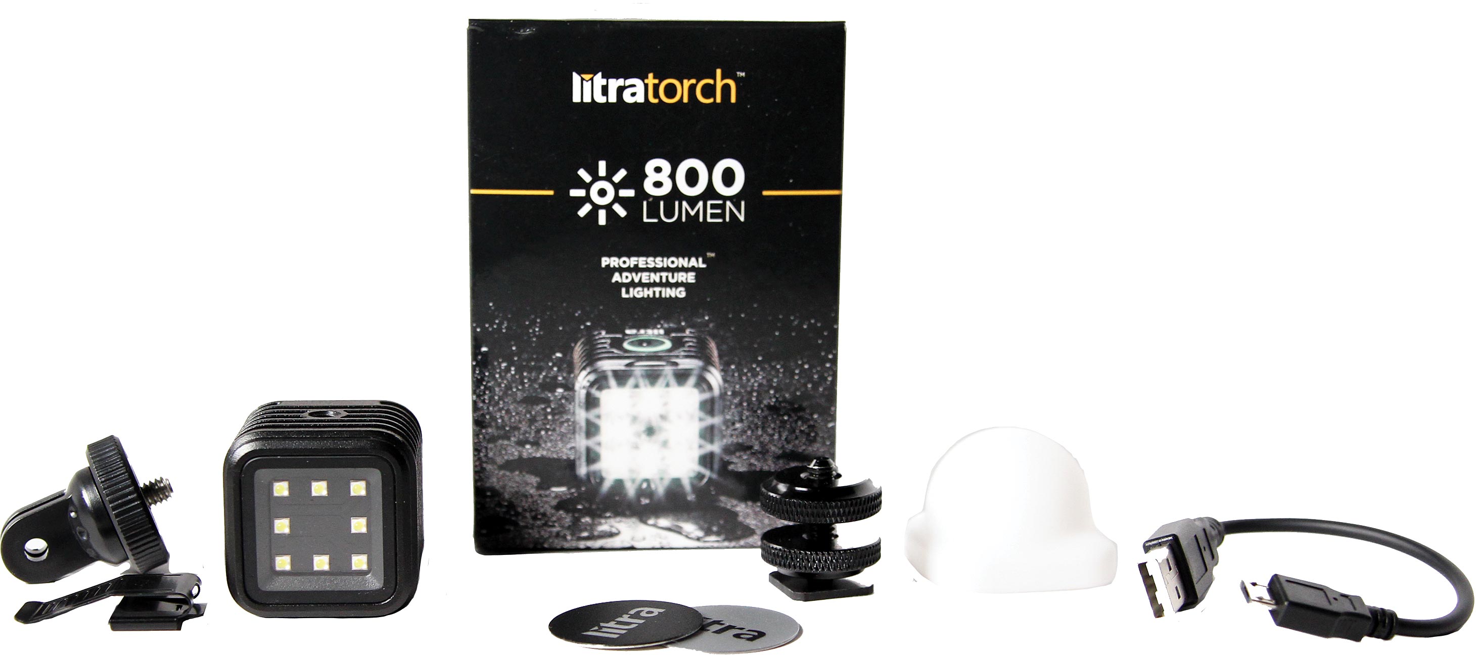 Product Description LitraTorch‚Ñ¢ is the worlds most versatile adventure photo and video light. At 1.5"x1.5" in size, the Torch provides 800 lumen of continuous, high quality light.