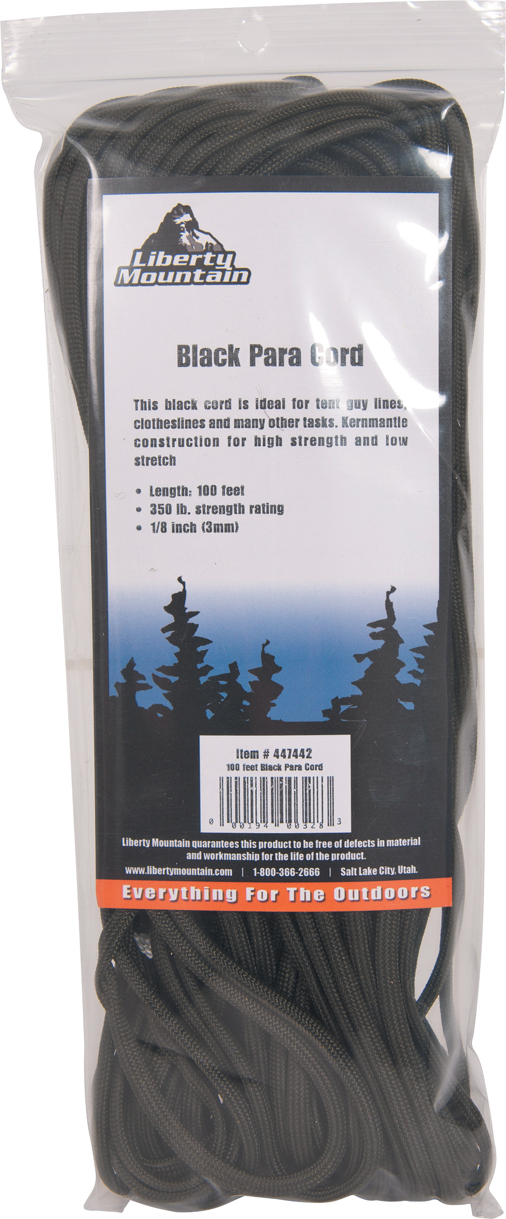 LIBERTY MOUNTAIN Add to Cart PARACORD 1000 FT BLACK MSRP: Was: Now: $96.49 Order within Get it by Ideal for camping and outdoor use. Also great for boating, halyard lines, clotheslines, awning line…