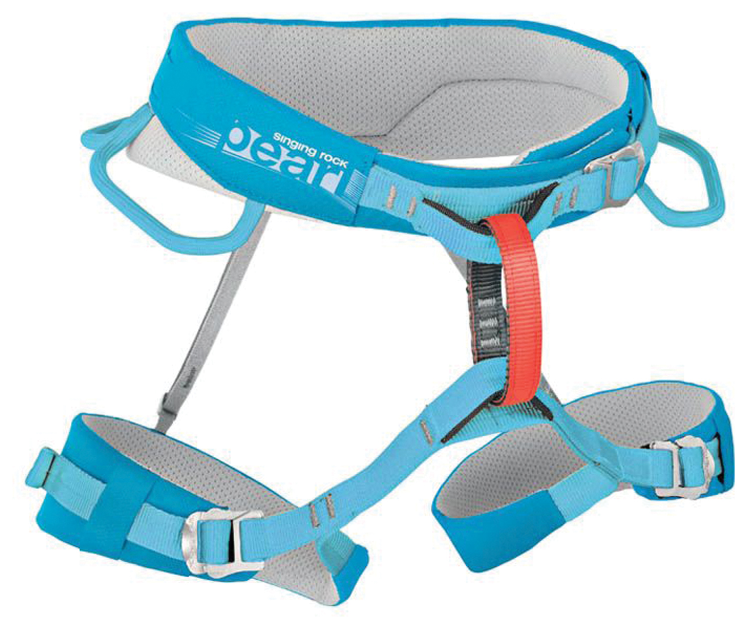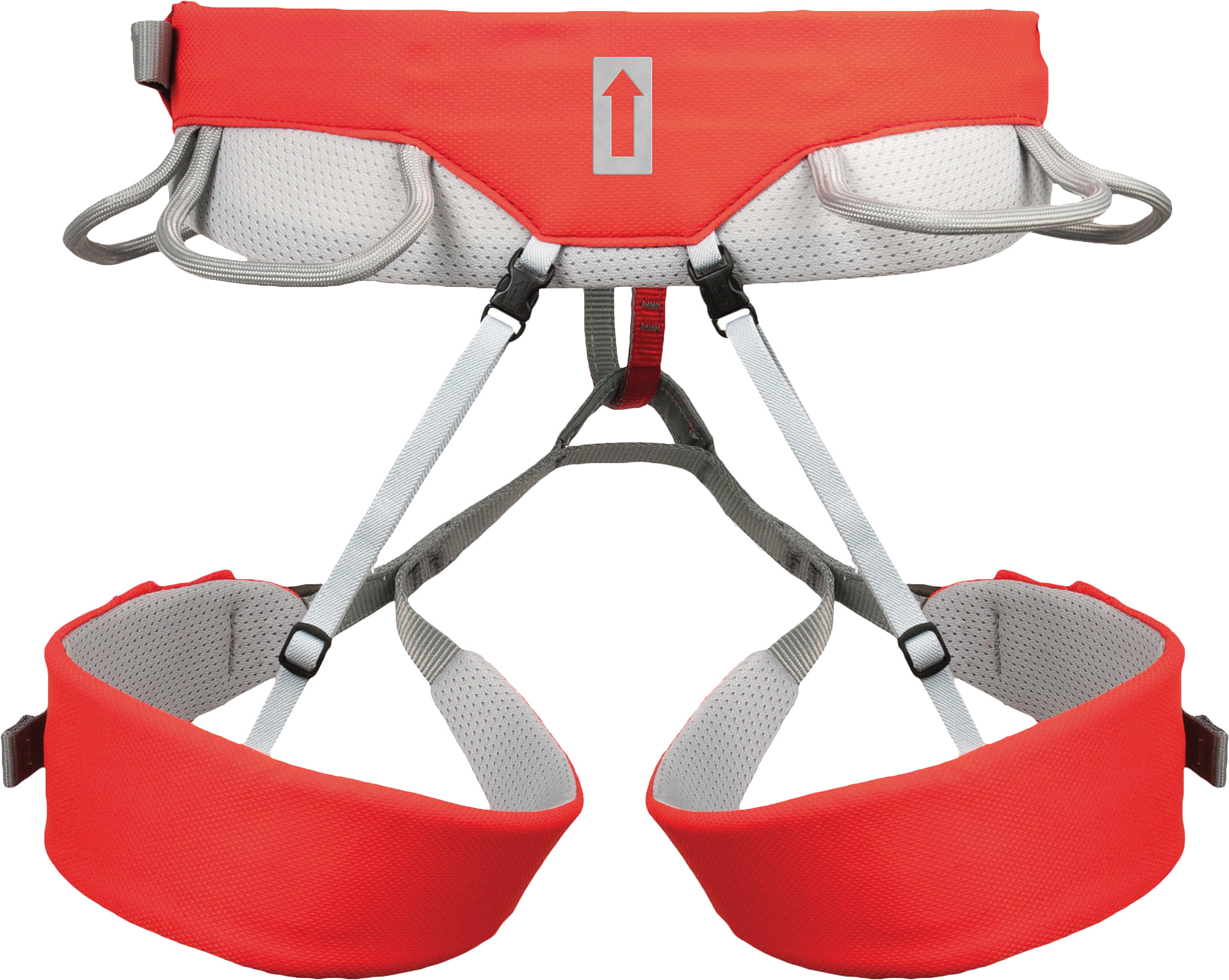 Women's climbing sit harness with adjustable leg loops. Three buckles for easy adjustment and comfort. Specifically shaped waist belt and longer belay loop to fit a women's physique. The Rock&Lock buckle allows for easy adjustment and makes it easy to put the harness on without having to take your skis or crampons off.