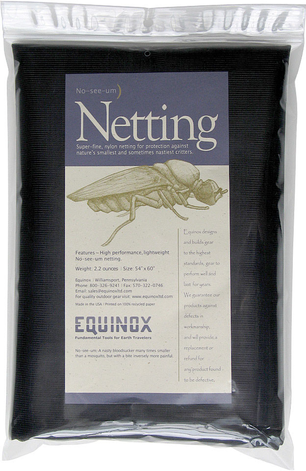 Product Description No-See-Um mosquito netting packaged in poly bag for display convenience. Size: 54" x 60". Made in USA.