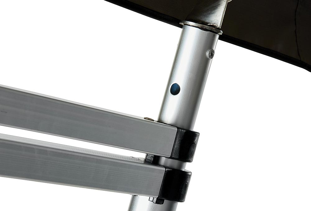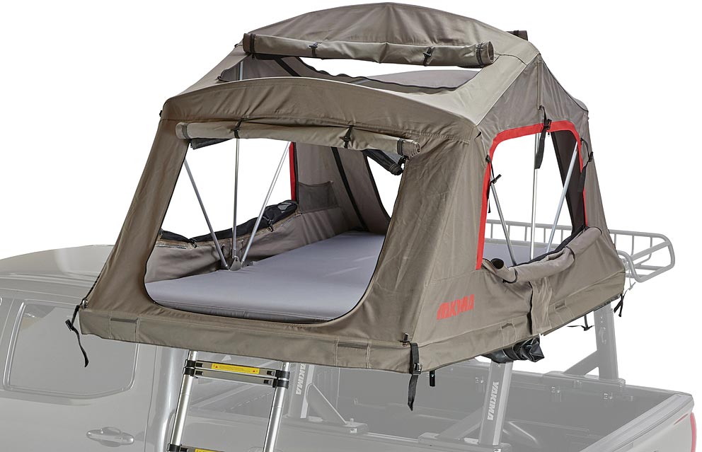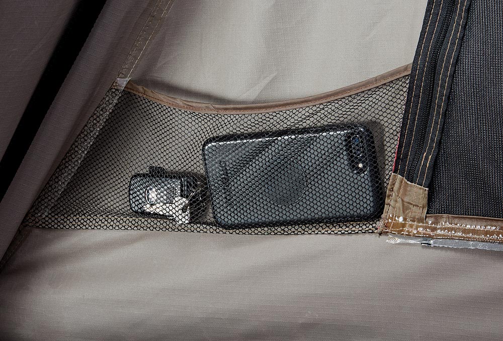 The SkyRise HD is the hub of the ultimate mobile base camp. This latest version of our best-selling rooftop tent features many upgrades and refinements that add up to heavy duty improvements. First, we created a better living environment. The geometry has been revised to deliver more usable space, and expanded windows, doors, and skylights provide grander views and better ventilation. Then we made it more rugged. The thicker 600D Ripstop Poly fabric and an added layer of waterproof PU coating covers the entire tent body to provide 4-season weather protection, and a burlier floor material ups the tent’s durability. Floor-mounted d-rings and guy points make it easier to hang gear and guy out the tent for a secure pitch in windy conditions, and a new ladder design makes it easier to adjust for various vehicle and ground heights. The ladder also has an auto close feature that makes it easy to close up.