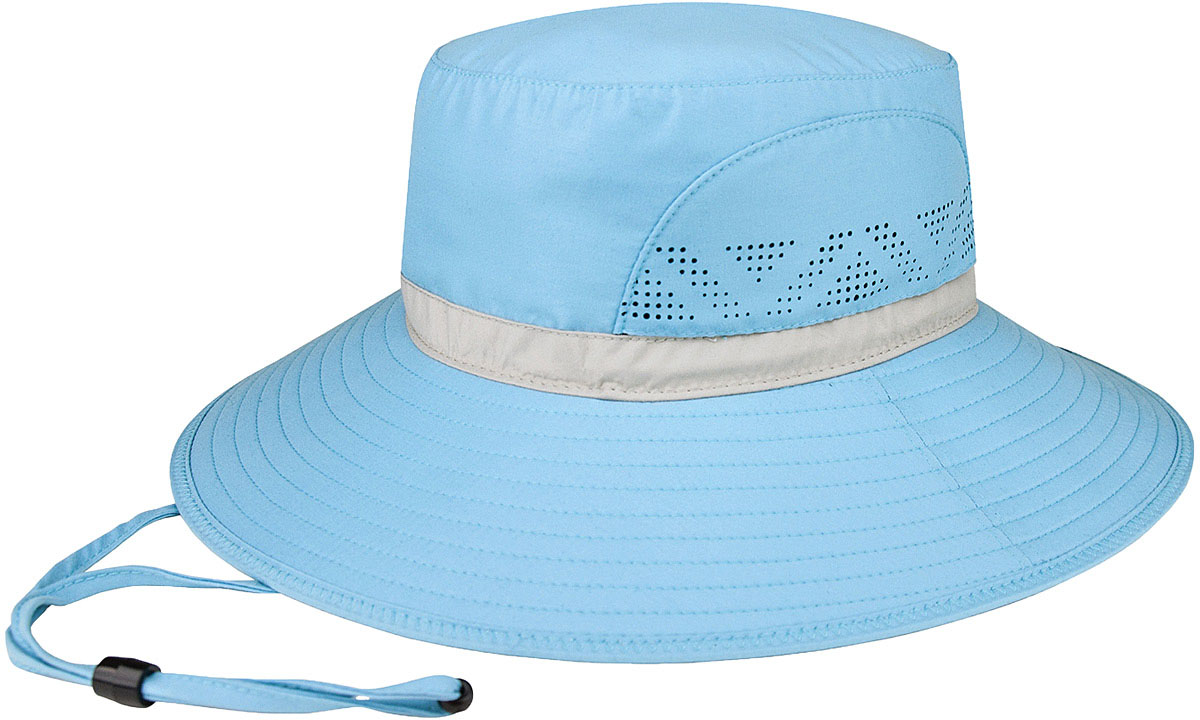 Product Description 100% Polyester Performance Sun Hat with Moisture Wicking Elastic Sweatband, UV 50+ Protection, Water Repellent, Adjustable Drawcord.