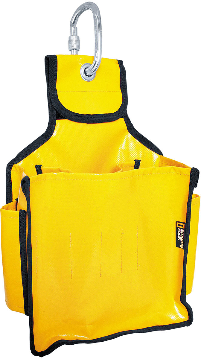 Product Description Made of high resistant and durable fabric. Inside and outside pockets for hardware. Intended to be attached directly to the harness via carabiner or using additional waist belt.