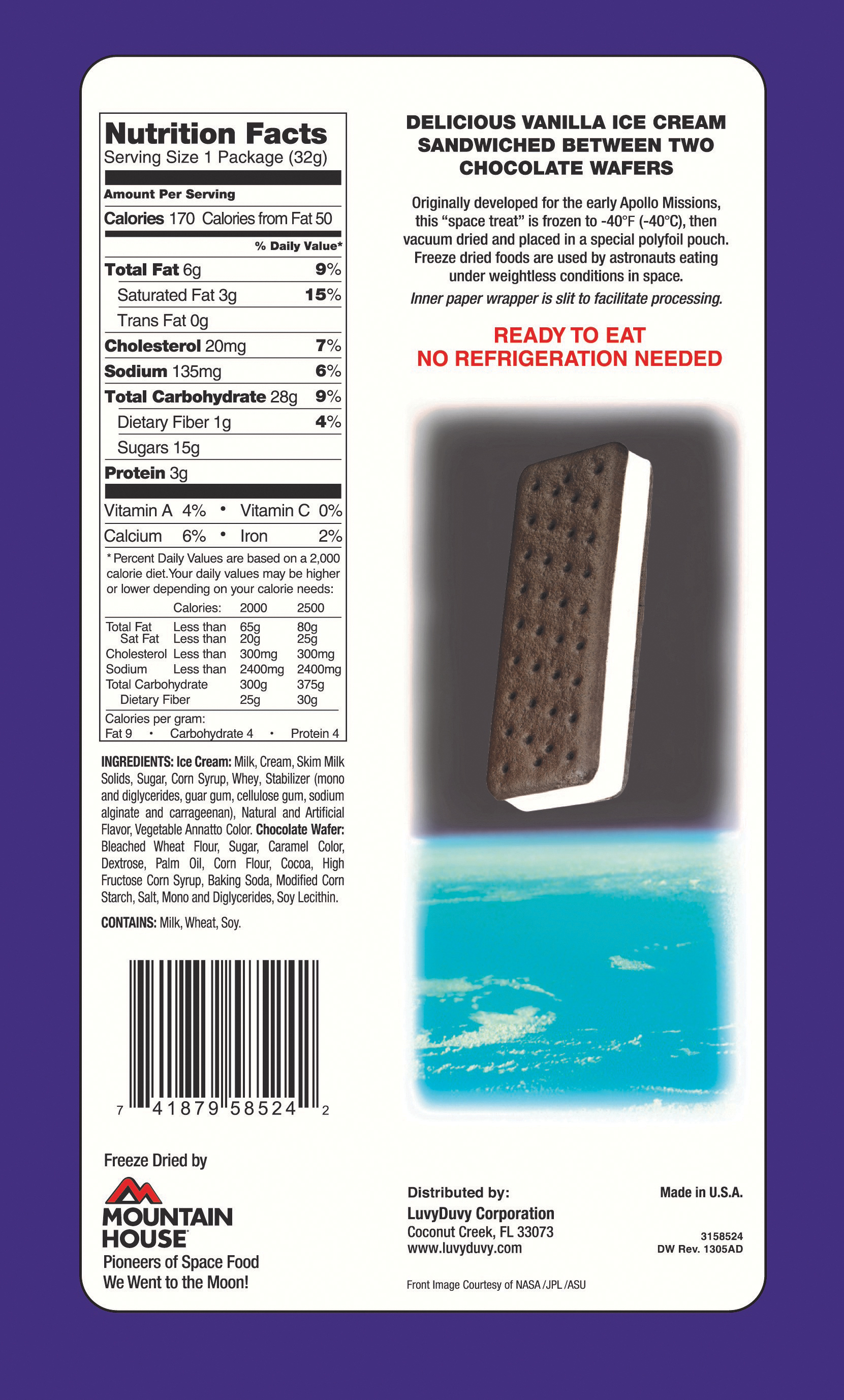 Product Description Ready to eat, freeze-dried Ice Cream Sandwich and Neapolitan ice cream bars are perfect for on-the-go. No refrigeration needed.