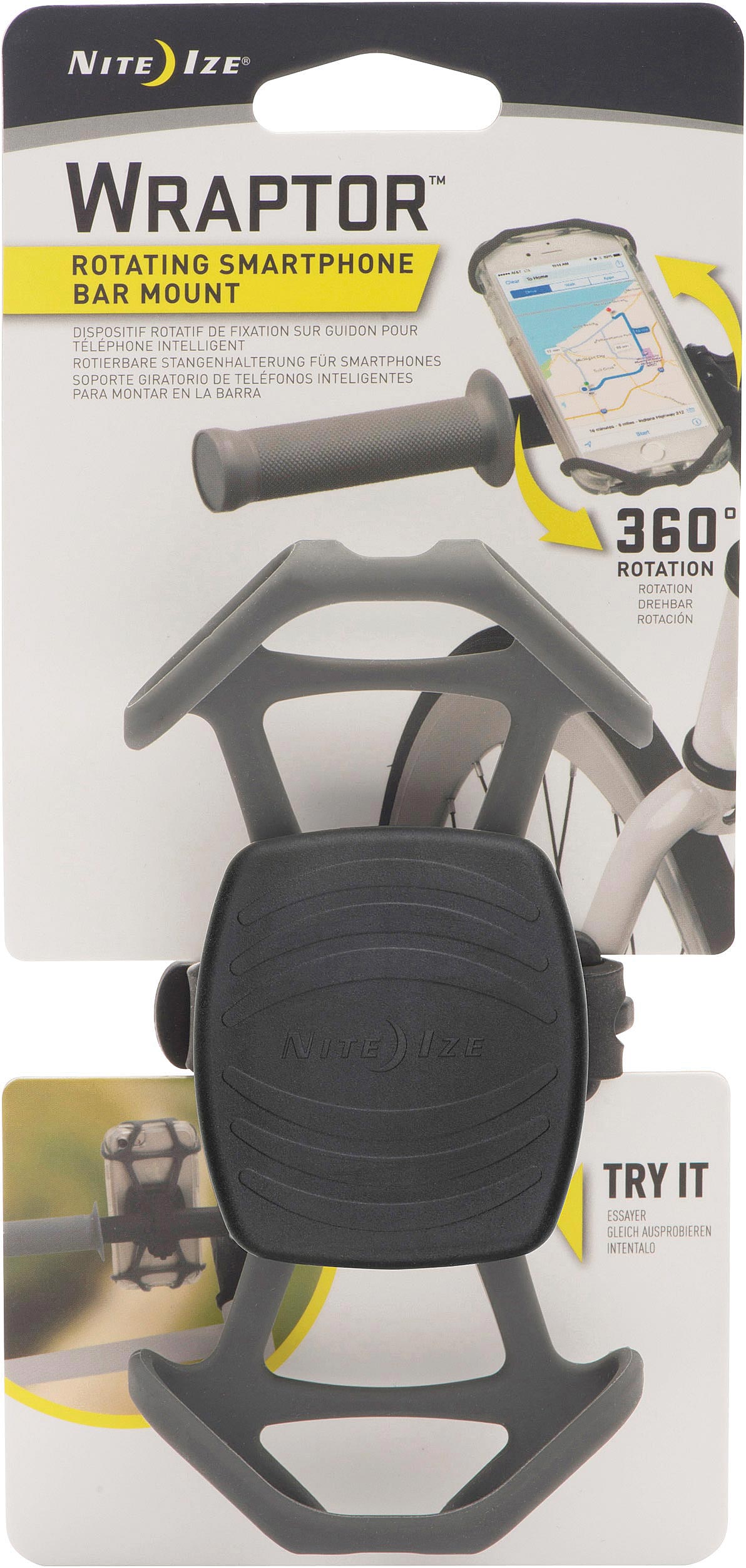 The Wraptor offers edge-to-edge screen visibility while holding phones securely, even over rough terrain. Designed to quickly attach and detach from the bar, the base easily rotates between landscape and portrait modes for maximum viewing adjustability.